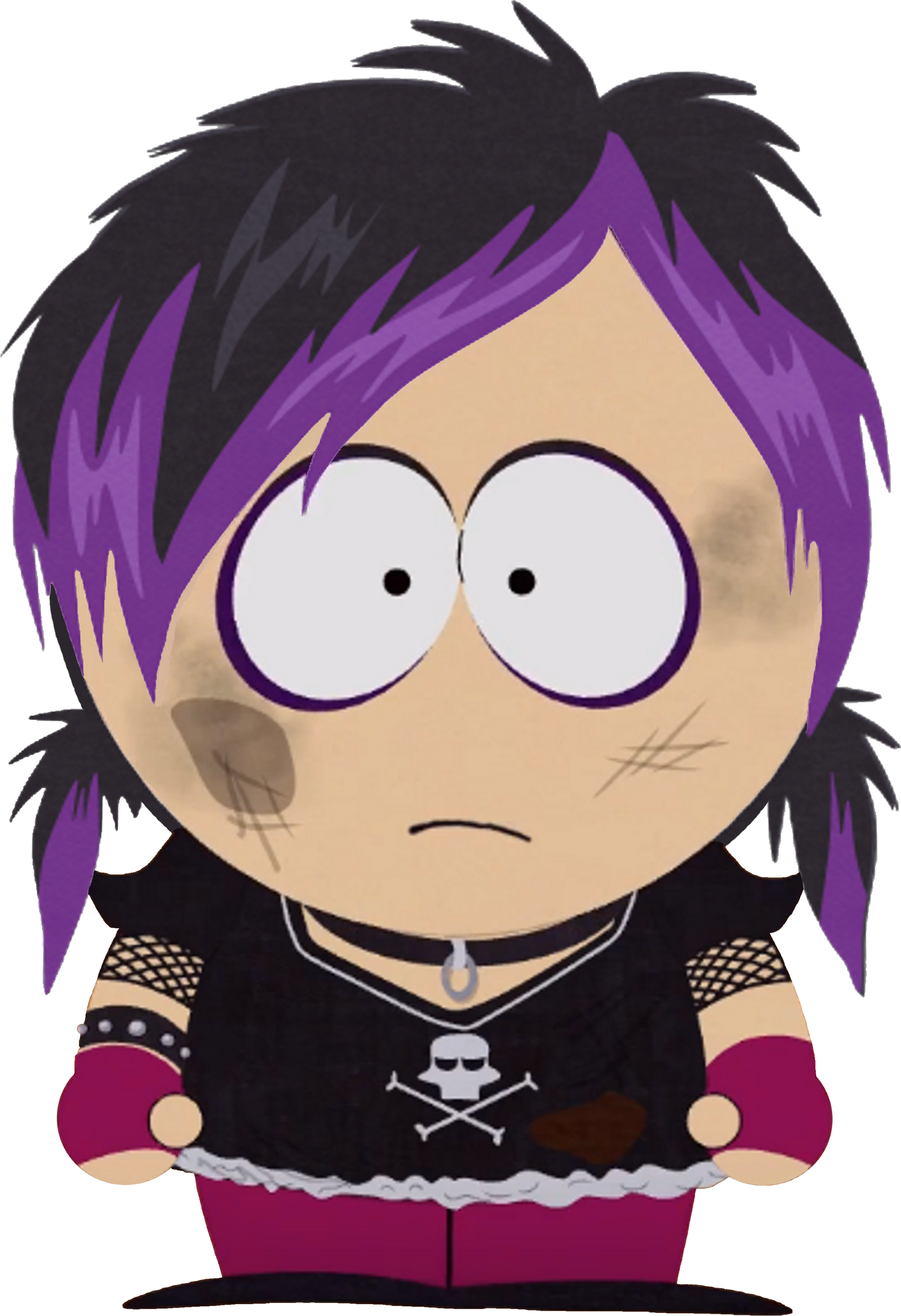 Karen McCormick is the second youngest of the goths. She is the sister of Kenny McCormick, and looks up to her fellow female goth, Henrietta. Although not initially a goth kid, she becomes one after the events of South Park: The Fractured But Whole's "From Dusk till Casa Bonita" DLC.